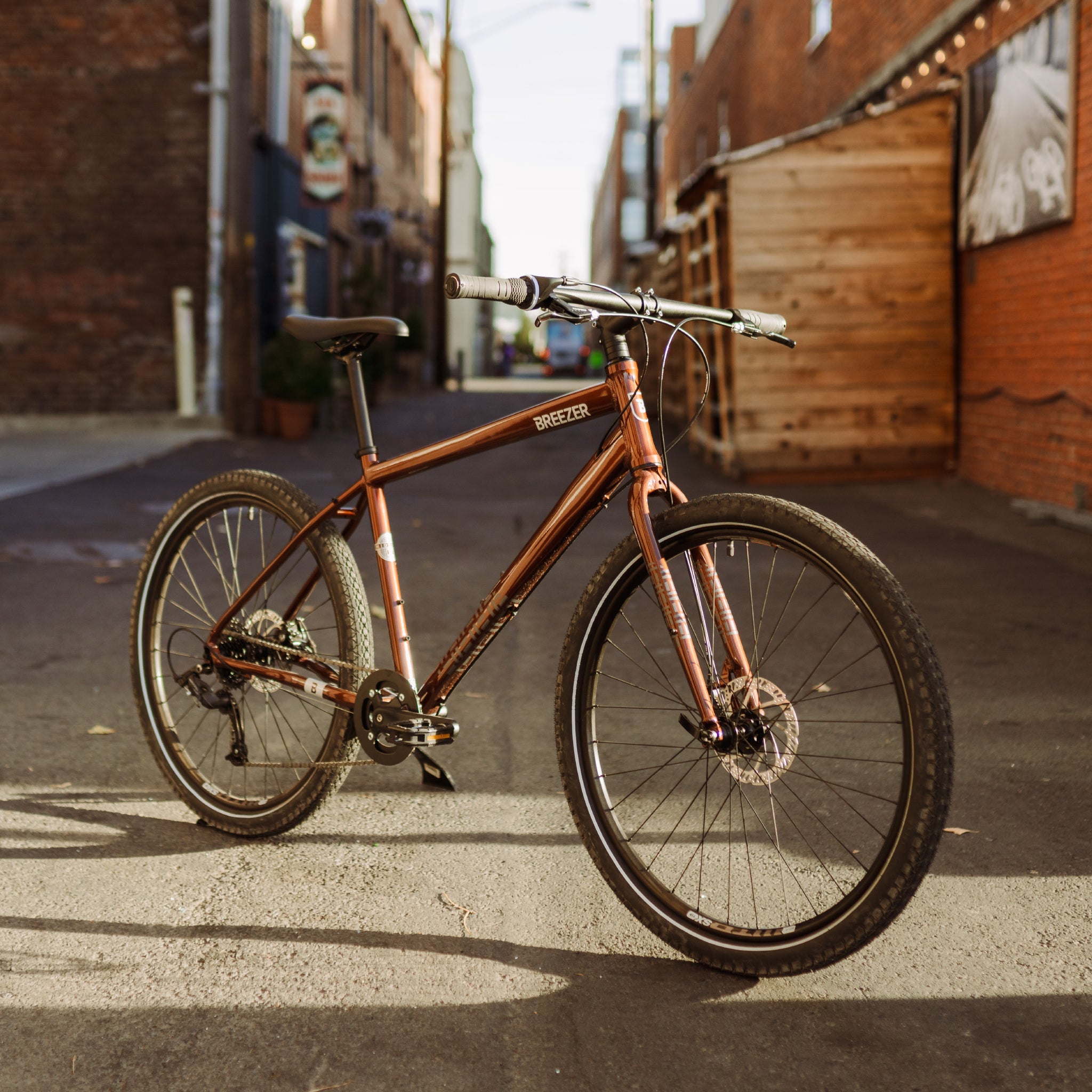 | Frame | Breezer custom-tapered aluminum, double water bottle mount |